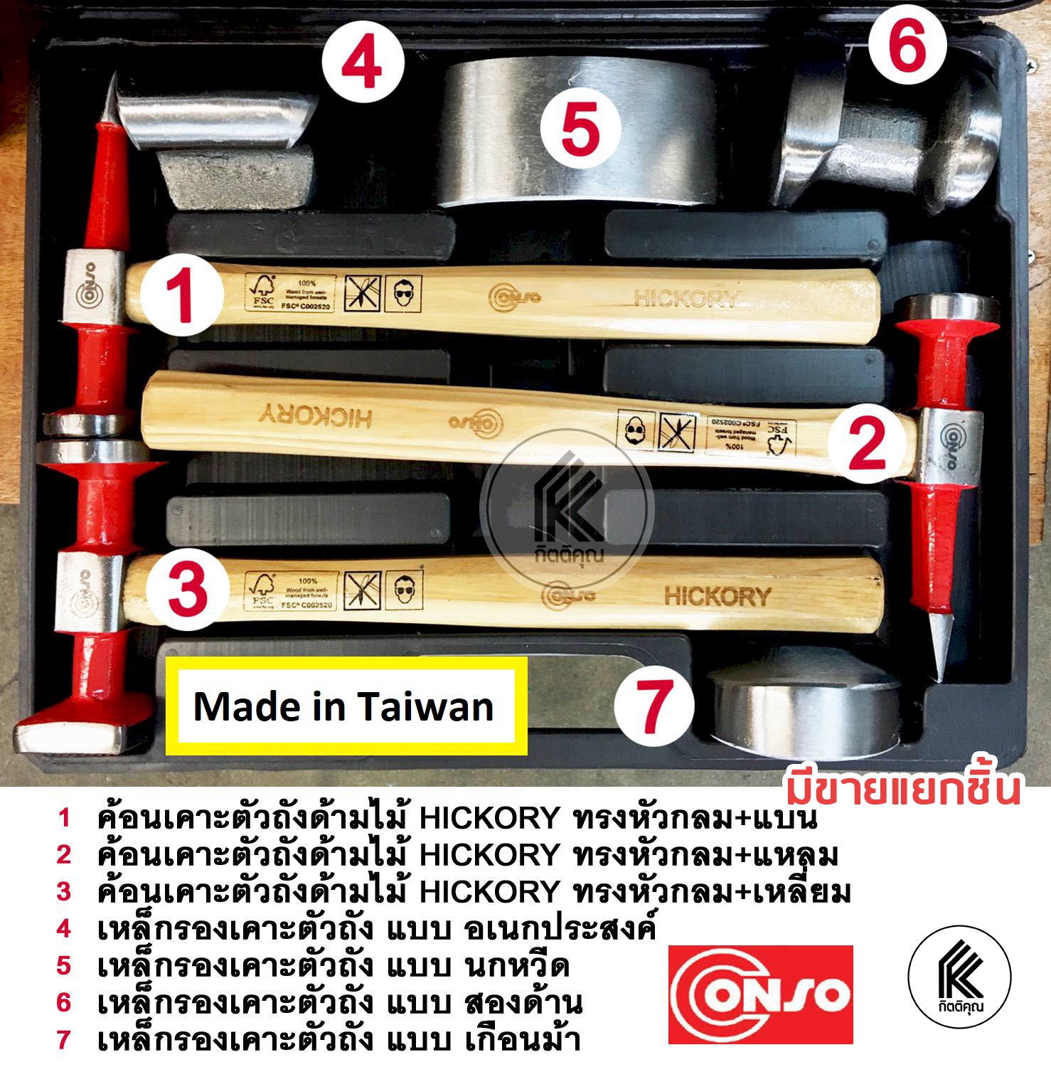 CONSO ค้อนเคาะตัวถังไม้ HICKORY ชุดค้อนเคาะรถ ทำจากเหล็กหนาอย่างดี