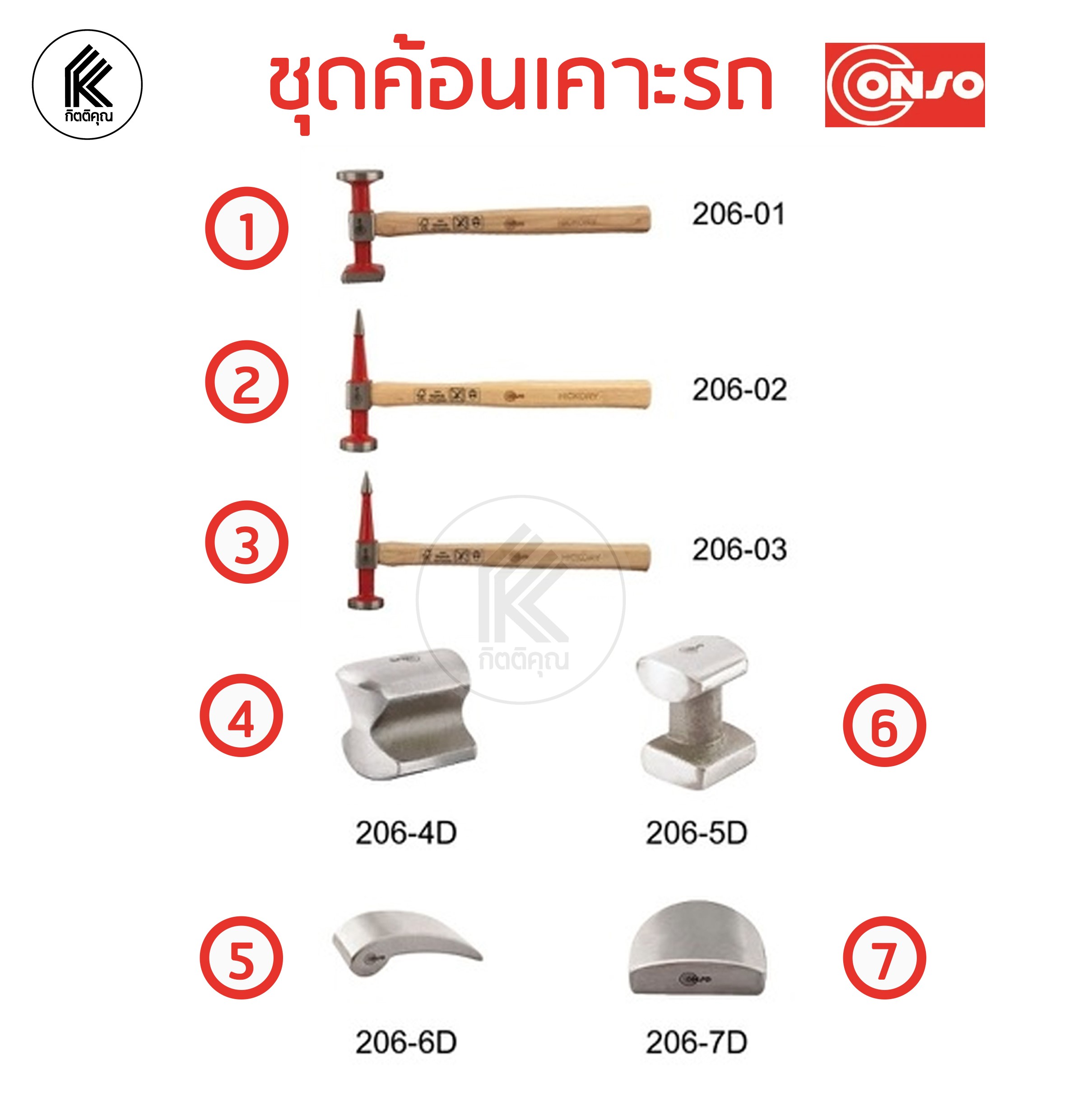 ค้อนเคาะตัวถัง 7 ตัวชุด CONSO #20610