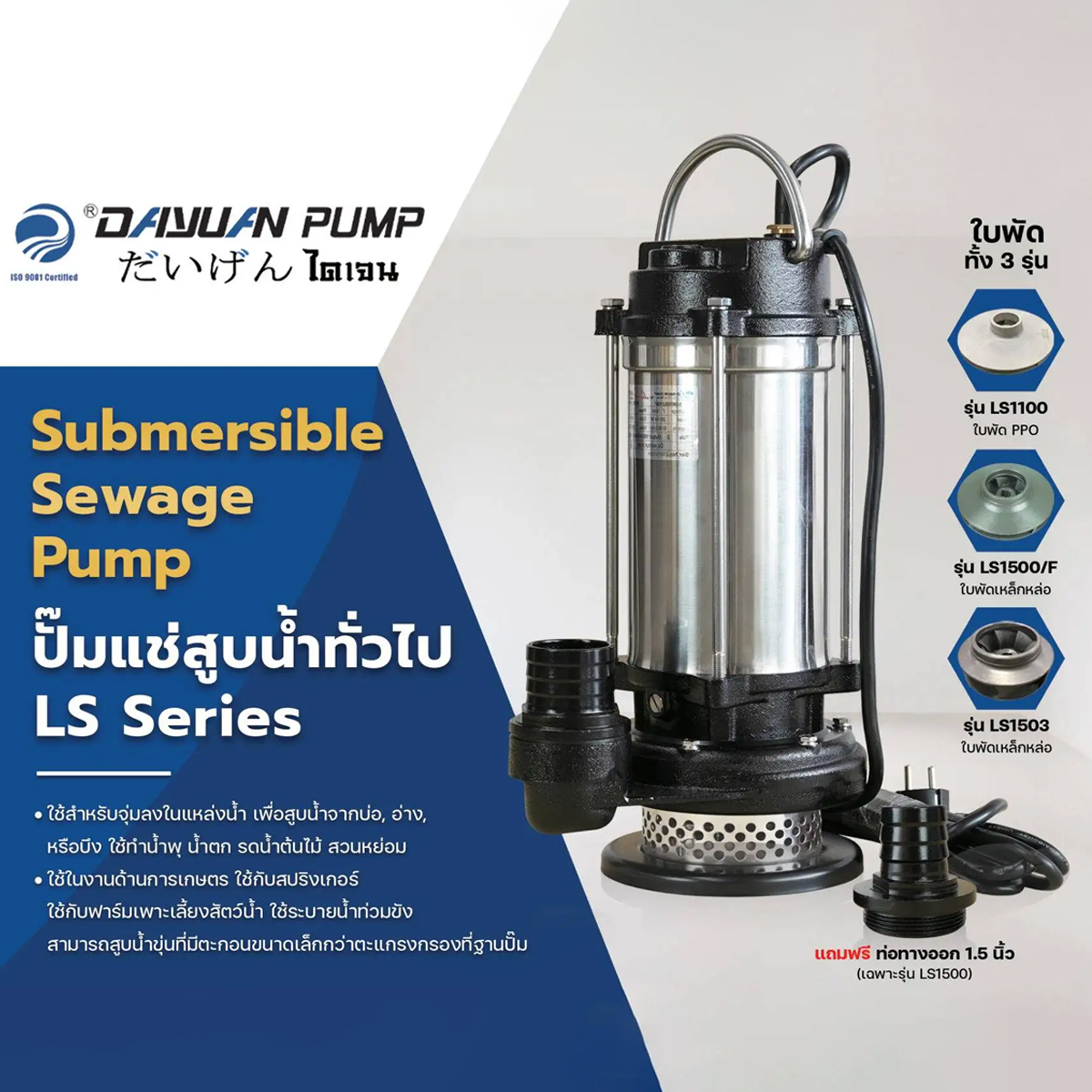 1.ปั๊มจุ่ม หรือเรียกว่า ปั๊มซับเมอร์ส, ปั๊มแช่สำหรับสูบน้ำเสีย