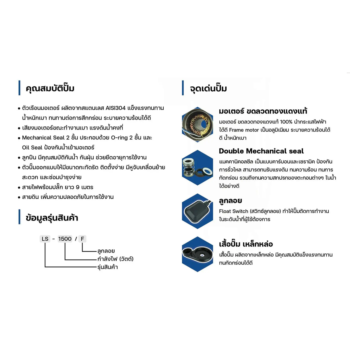 6. Mechanical seal 2 ชั้น O ring 2 ชั้น และ Oil seal ป้องกันน้ำเข้ามอเตอร์