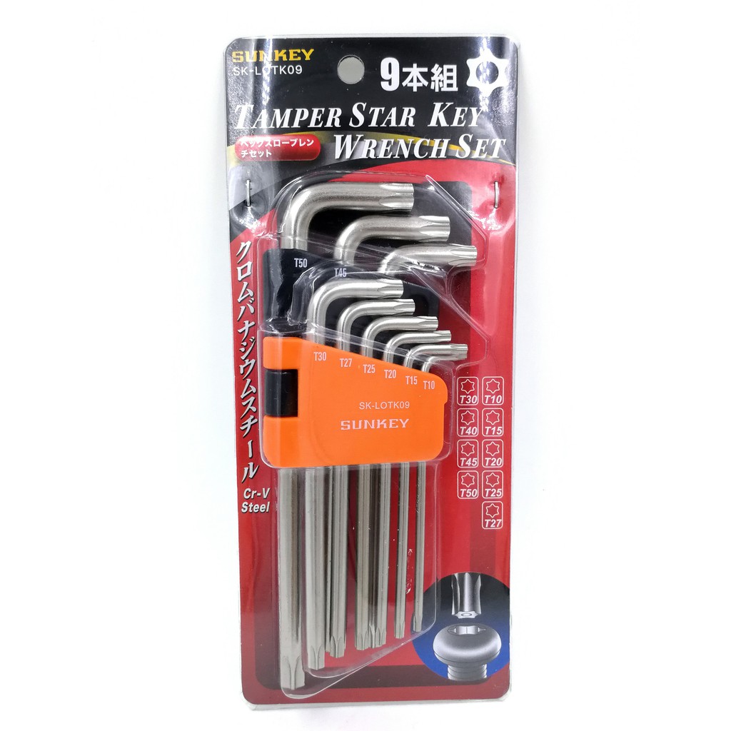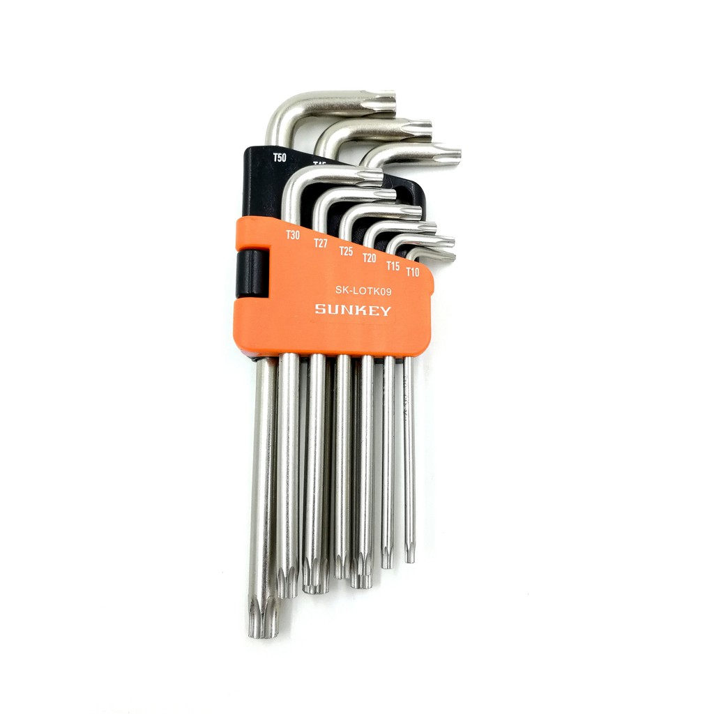 SUNKEY ประแจTorx 9ตัวชุด มีรู ความยาวปานกลาง T10-T50