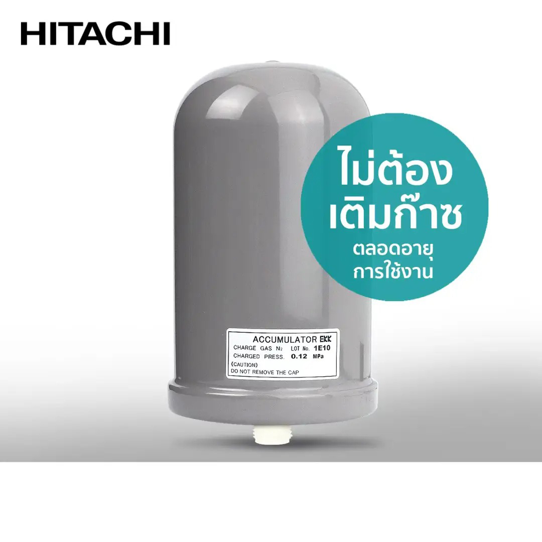 ถังแรงดันในปั๊มน้ำ Hitachi ชนิดแรงดันคงที่ทุกรุ่น ประกอบด้วยแผ่นยางไดอะแฟรม บรรจุก๊าซไนโตรเจน ทนทานไม่เป็นสนิม ไม่ต้องเติมก๊าซตลอดอายุการใช้งาน ทำให้แรงดันน้ำคงที่สม่ำเสมอ ทุกจุด ทุกชั้น