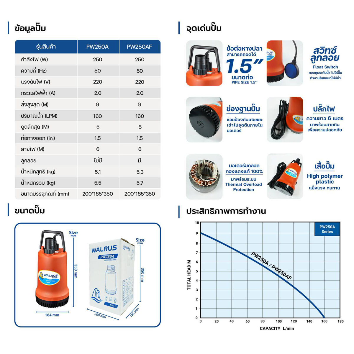 ปั๊มแช่ WALRUS รุ่น PW250A 1.5″ 250w