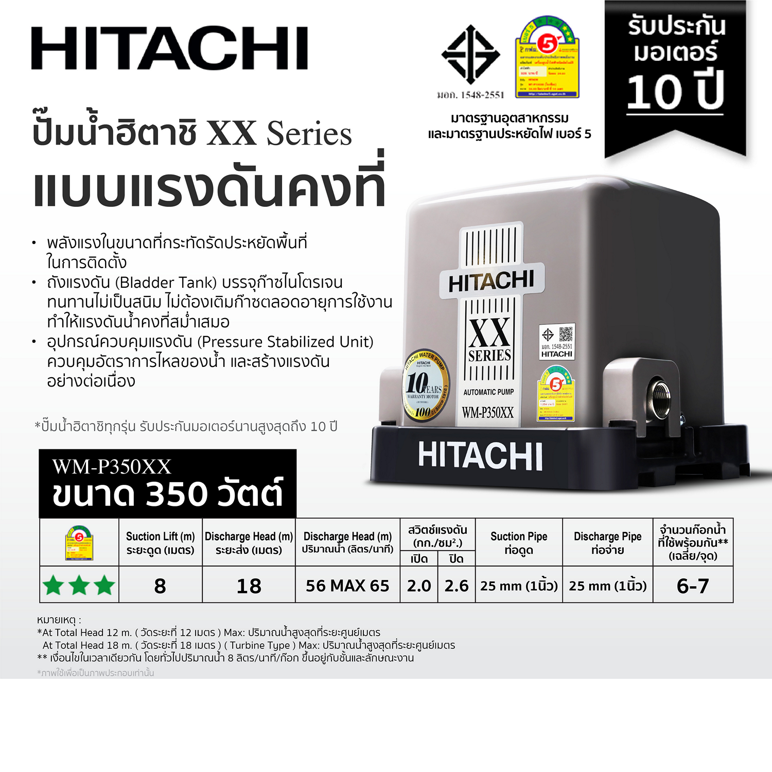 หน้าหลัก งานประปา เครื่องสูบน้ำ-ปั๊มน้ำ เครื่องอัดฉีด ปั๊มแรงดังคงที่ คงที่ HITACHI