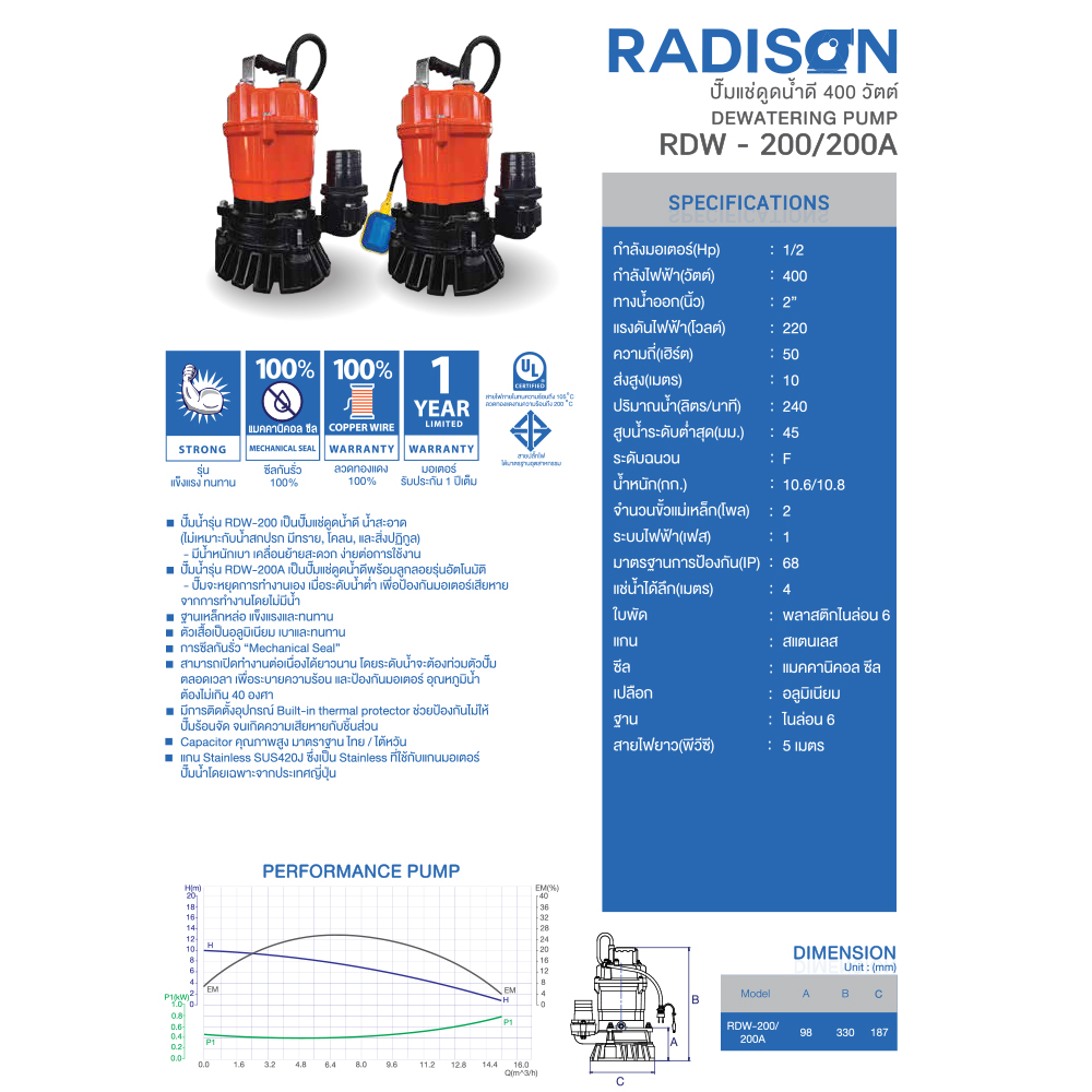 – สามารถเปิดทำงานต่อเนื่องได้ยาวนาน โดยระดับน้ำจะต้องท่วมตัวปั๊มตลอดเวลา เพื่อระบายความร้อน และป้องกันมอเตอร์ อุณหภูมิน้ำต้องไม่เกิน 40 องศา