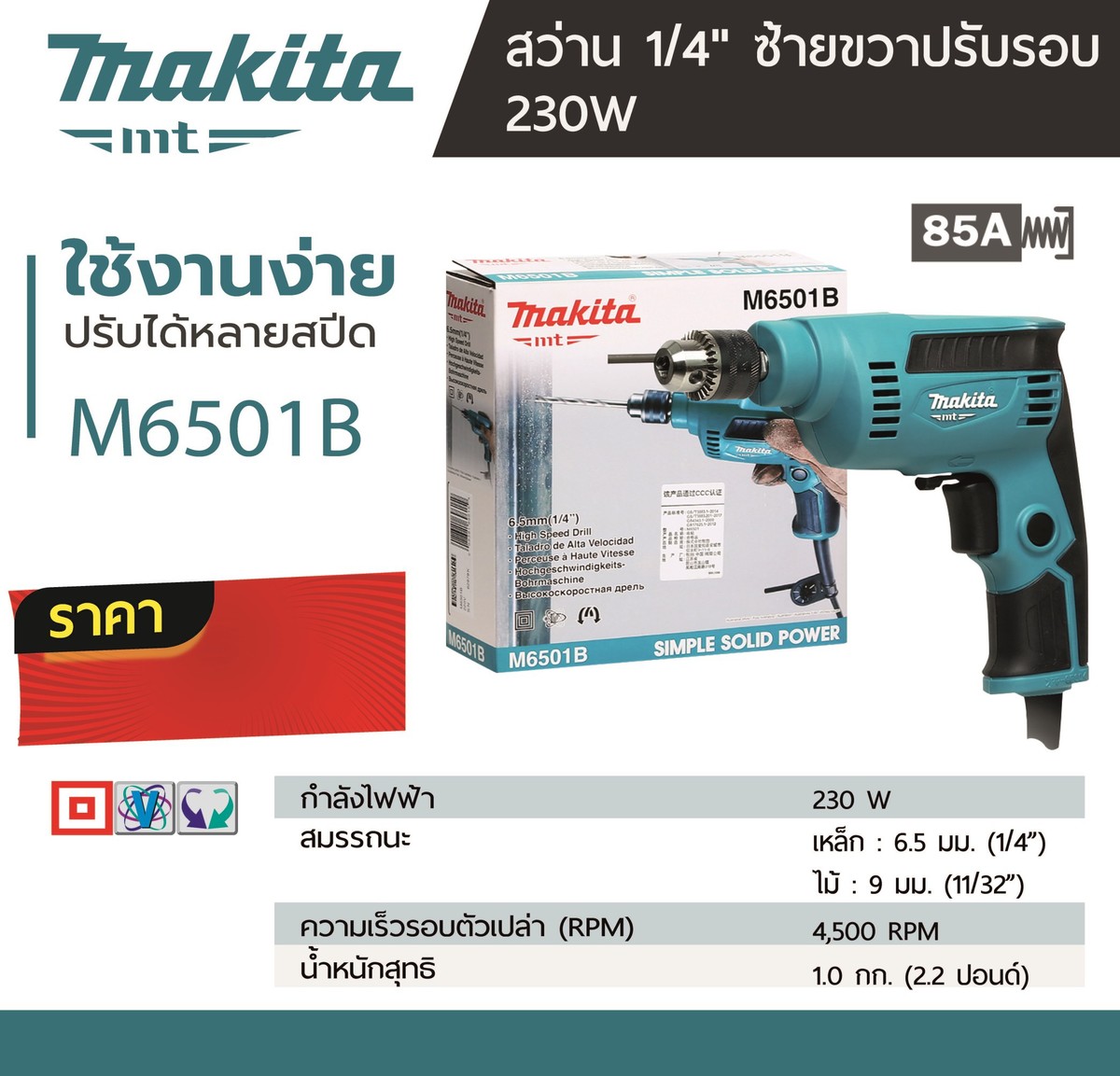 สว่านไฟฟ้า MAKITA ขนาด 1/4 นิ้ว กำลังไฟ 230 วัตต์ รุ่น M6501B