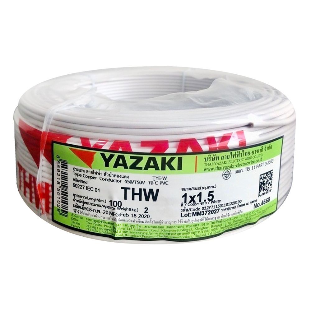 สายไฟ THW 1×1.5 ขาว YAZAKI (100ม/ม้วน)