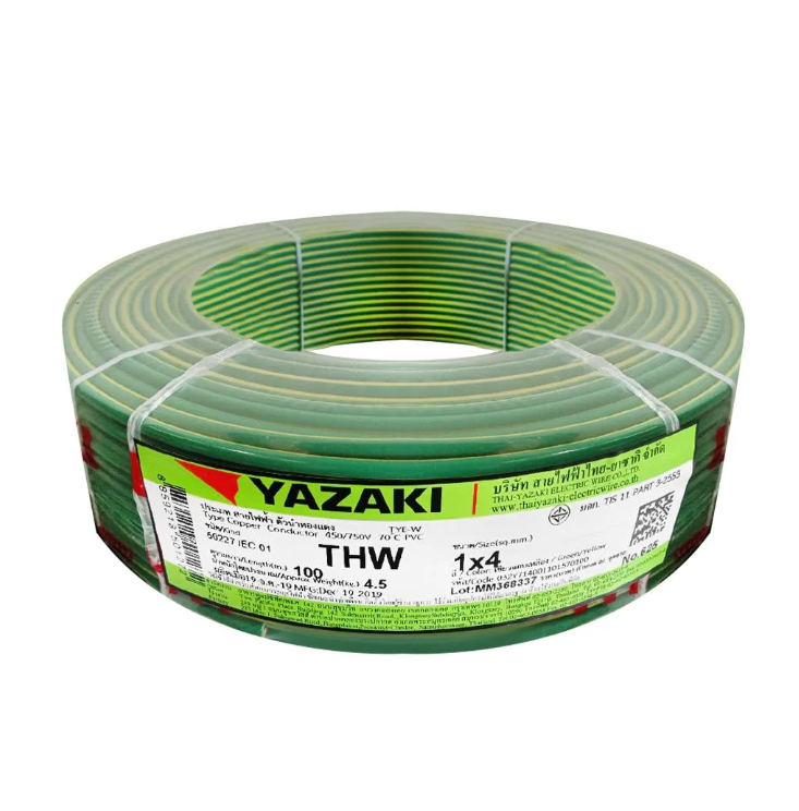 สายไฟ THW 1×4 เขียว/เหลือง YAZAKI (100ม/ม้วน)