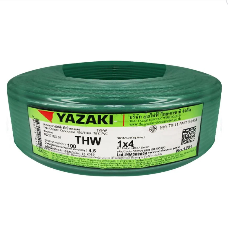 สายไฟ THW 1×4 เขียว YAZAKI (100ม/ม้วน)