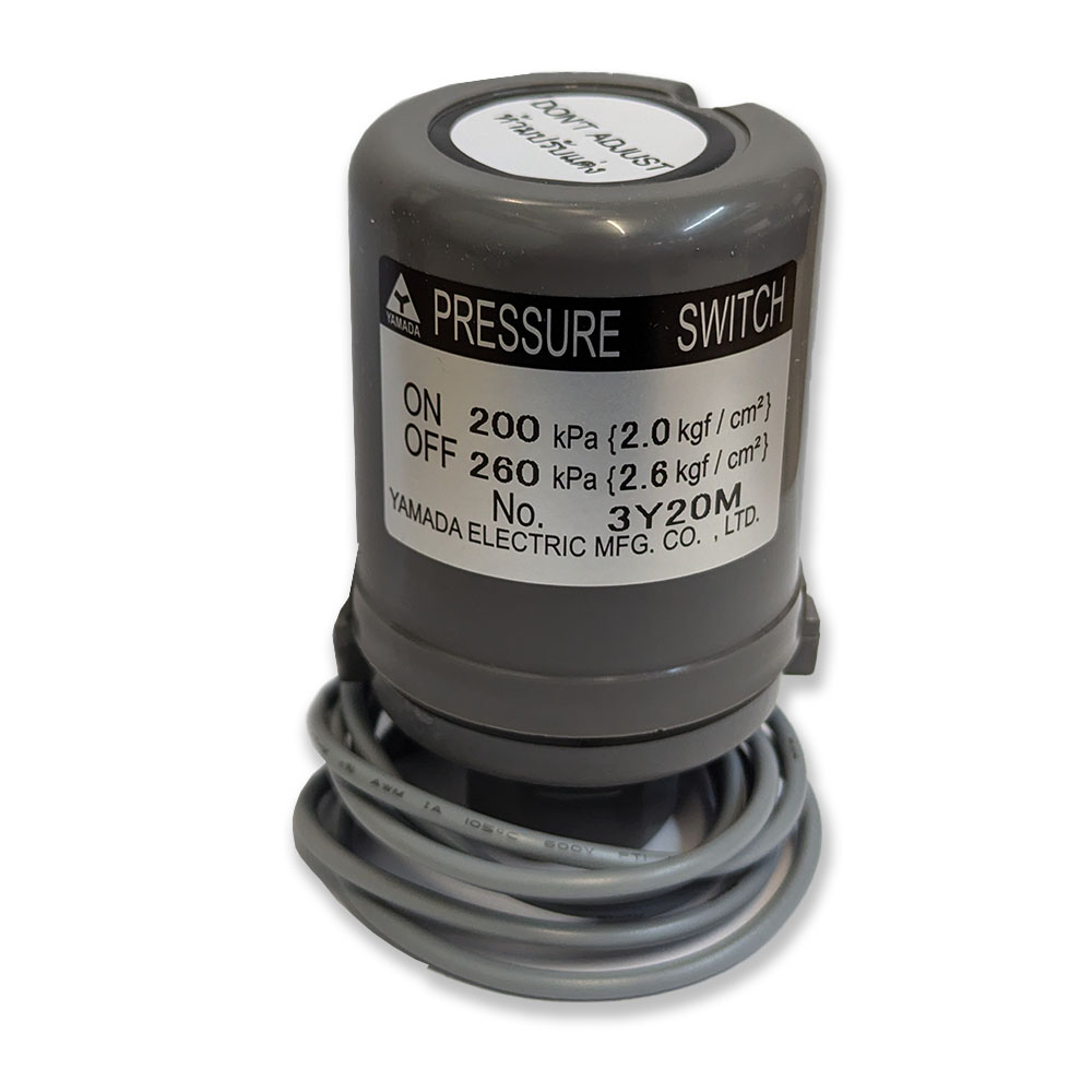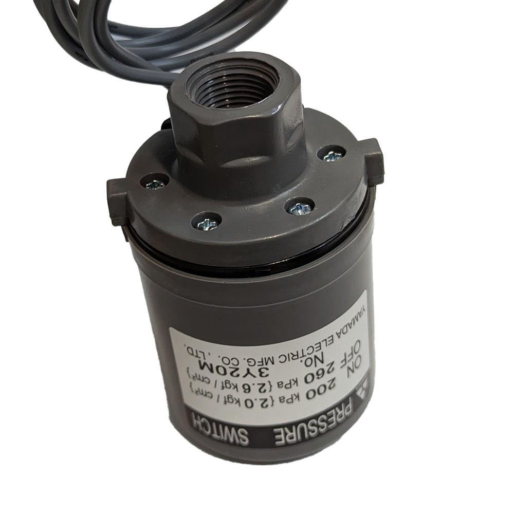 Pressure Switch ทำหน้าที่วัดความดันในถังปั๊มน้ำด้วยระบบอัตโนมัติ เพื่อควบคุมการทำงานของมอเตอร์ และเป็นแรงดันสวิตซ์จ่ายไฟให้มอเตอร์ปั้มน้ำ ทำการจ่ายน้ำเมื่อมีการใช้น้ำ หรือหยุดทำการจ่ายน้ำเมื่อหยุดใช้น้ำ