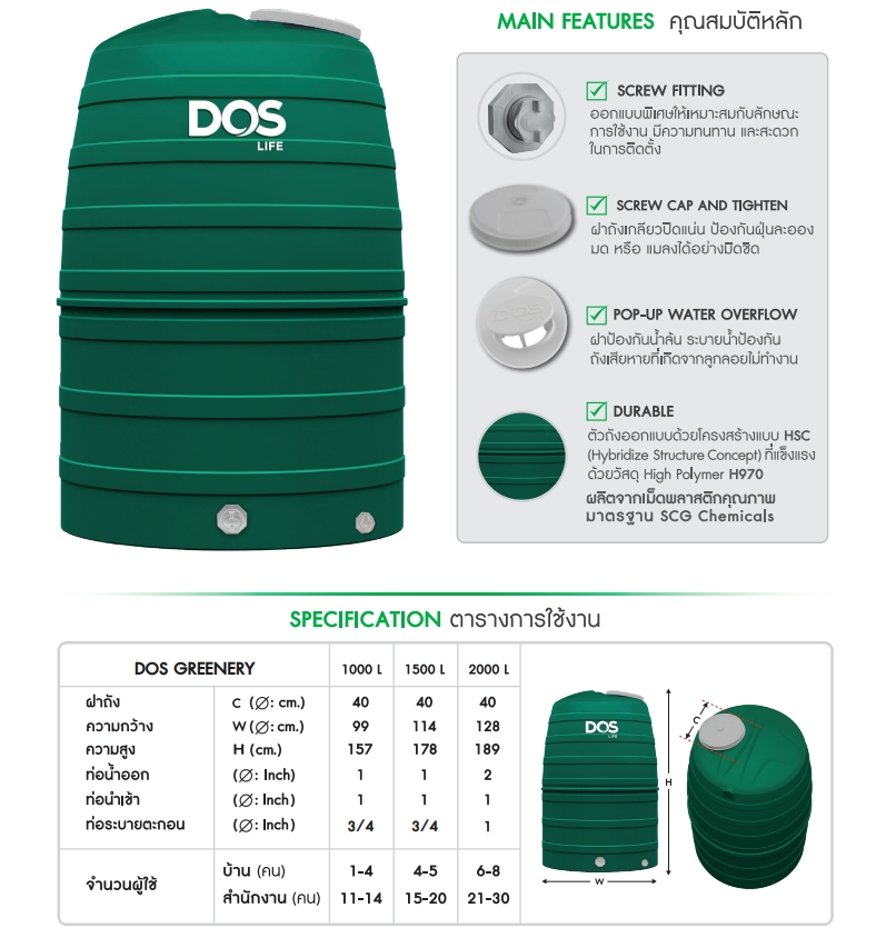 ถังเก็บน้ำ DOS GREENERY 1000 ลิตร สีเขียว