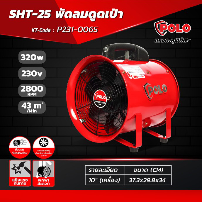 POLO พัดลมอุตฯ ดูดเป่า 10 นิ้ว 320 วัตต์ รุ่น SHT-25 ความเร็วลม 43 ลูกบาศก์เมตร ความเร็วรอบ 2800 รอบ/นาที สำหรับใช้ในงานดูดหรือเป่าลมในปริมาณมาก (โปโล)